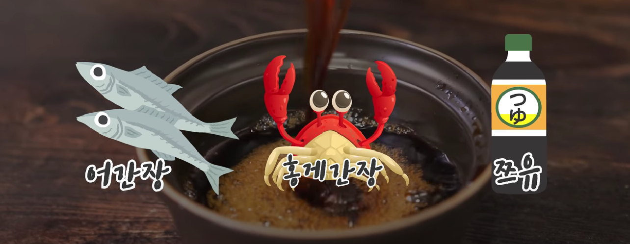 해산물을 넣어 만드는 어간장과 홍게간장,