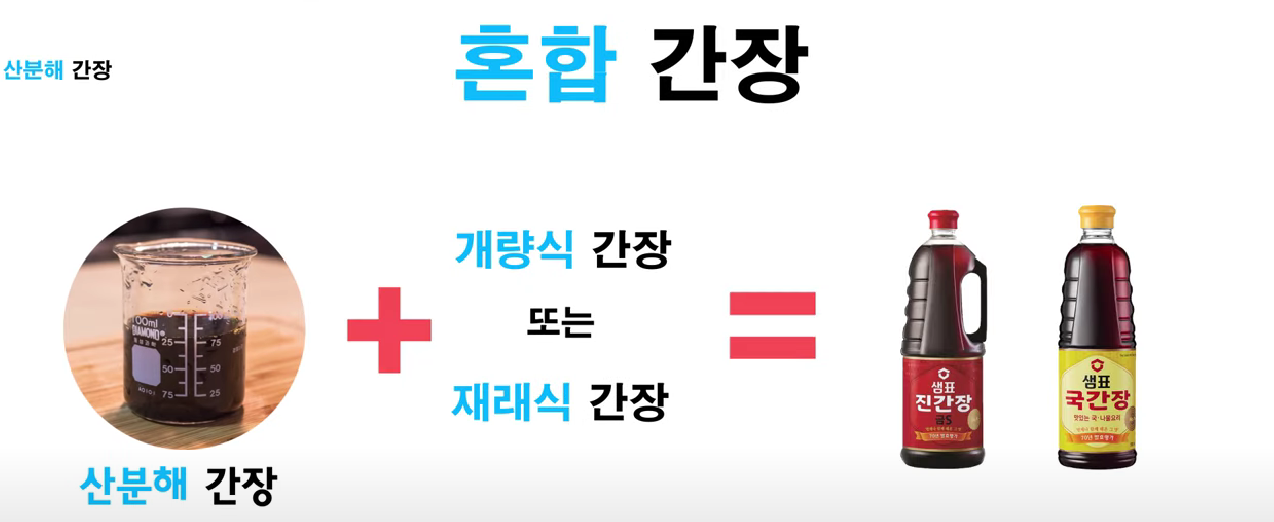 혼합간장은 산분해 간장과 개량식 또는 재래식 간장을