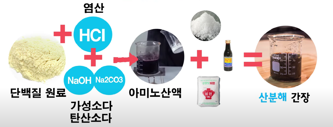 산분해간장은 단백질 원료를 염산으로 가수분해하고